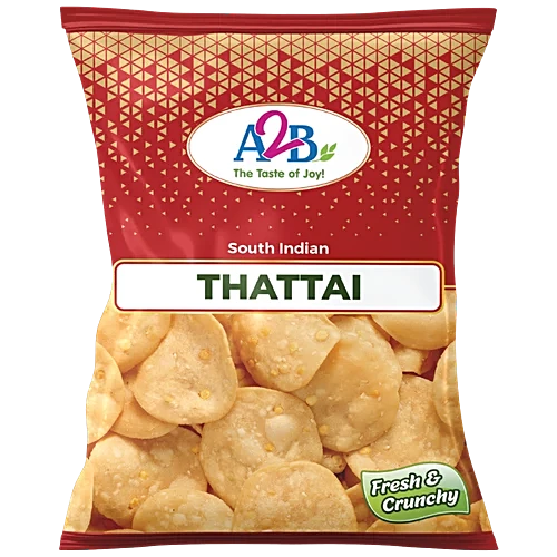 A2B Thattai 200g is a traditional South Indian crispy snack made from rice flour and spices. It offers a crunchy texture and authentic flavor, making it perfect for tea-time snacking.
