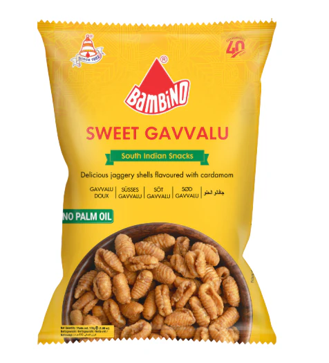 Prepared using high-quality ingredients and traditional methods, Bambino Sweet Gavvalu retains the authentic taste of South Indian kitchens. Each batch is crafted to ensure freshness, crispness, and the perfect level of sweetness, giving you a snack that feels homemade and festive.
